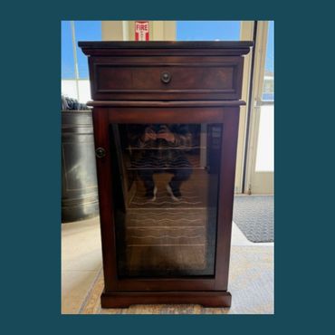 High-end custom bar with integrated dual-zone wine fridge. Event-used only, near-new condition, and sourced from a luxury office suite undergoing a larger upgrade.