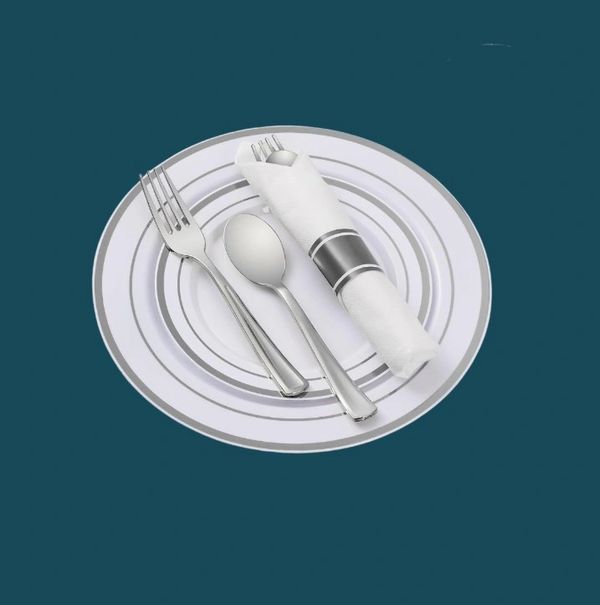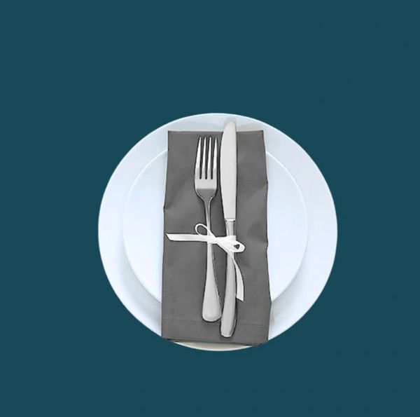 We offer both plastic disposable silverware and a Teardrop Stainless Steel Flatware Set wrapped in 100% cotton dinner napkins—please contact us in advance with your silverware preference so we can prepare your table accordingly.